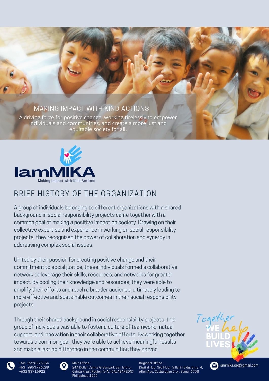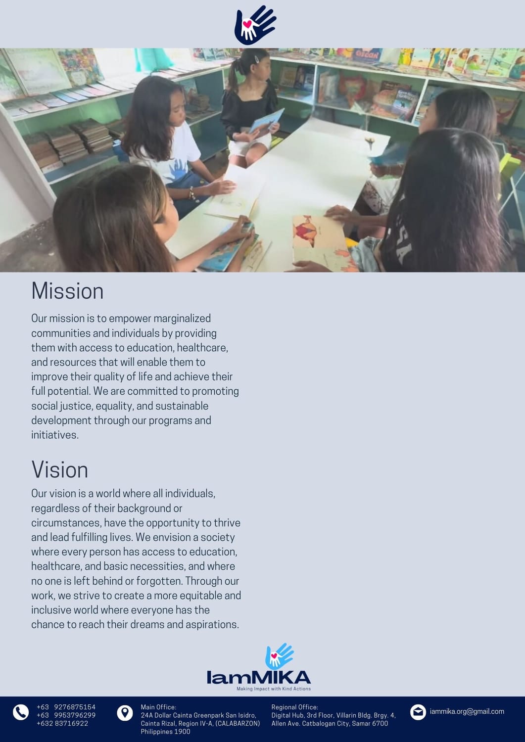 At IamMIKA, we are a dedicated group of individuals committed to transforming lives and creating positive change. Founded with the mission to build lives through compassionate actions, we work with marginalized communities to provide education, healthcare, and resources that uplift and empower. Our name, MIKA, stands for Making Impact with Kind Actions, a reflection of our core values of empathy, equality, and social responsibility.