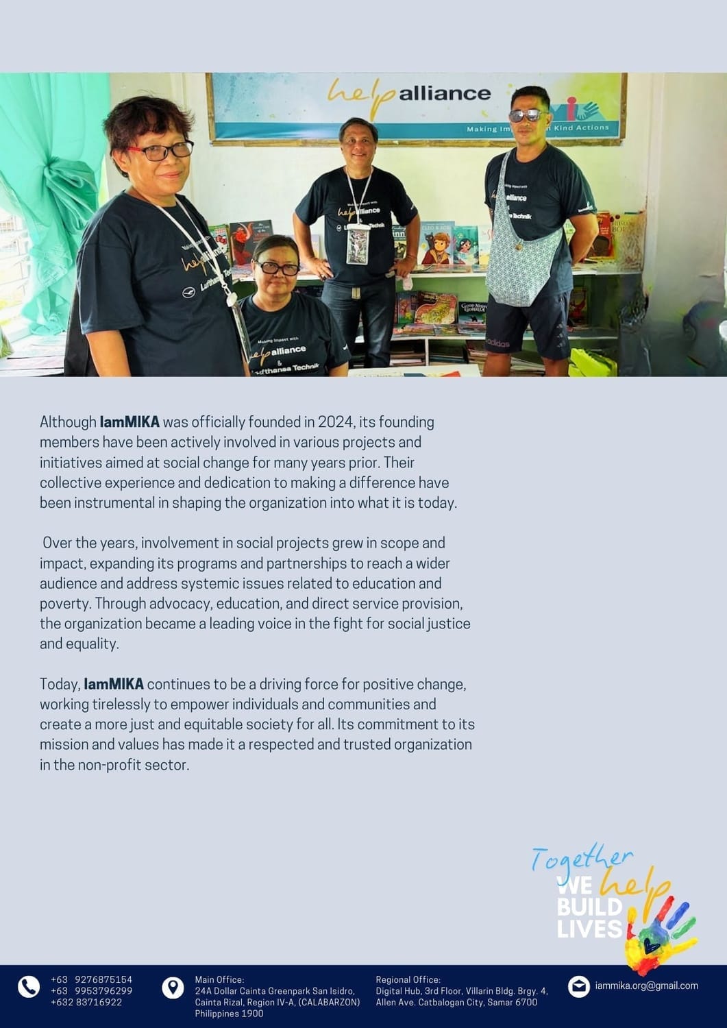 IamMIKA was officially established in 2024, our founding members have been working on social responsibility initiatives for many years. Over time, we expanded our efforts and partnerships, evolving into the nonprofit organization we are today. From providing school supplies to electrifying remote areas, our projects have grown in scope, but our mission remains the same: We help build lives.