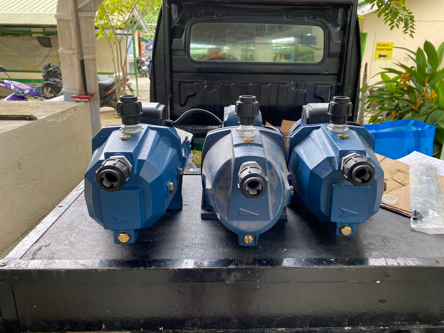 Turnover water tank and motor
